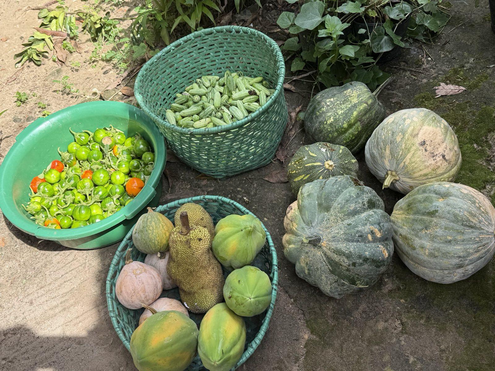 Today, their plot combines food crops, fruit and timber trees, small-scale livestock, and native bee production. Even their home is a model of sustainability, built with PET bottles, clay, and locally sourced wood.